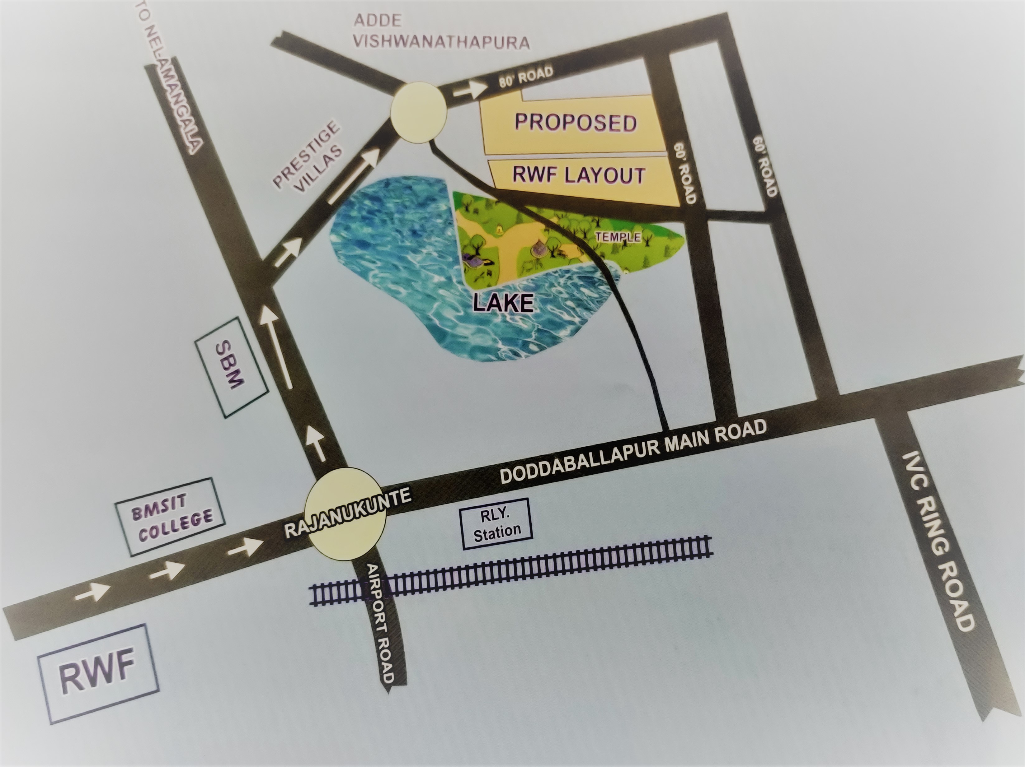 Our RWFEHBCo. Op. Society layout is situated at Adde Vishwanathapura near Rajanukunte. From yelahanka 12KM, 10.5 KM from our factory & 15KM from International Airport. This area is approved by BIAAPA.