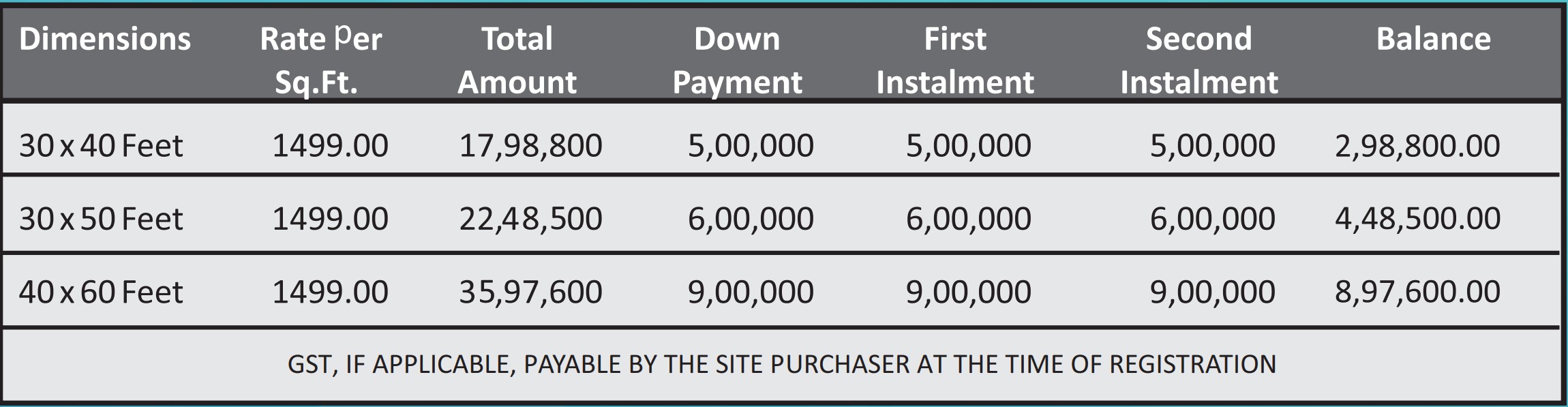 Registration charges extra as per Government rules. Bank loans will be available from Nationalized & Scheduled banks during the time of Registration.
